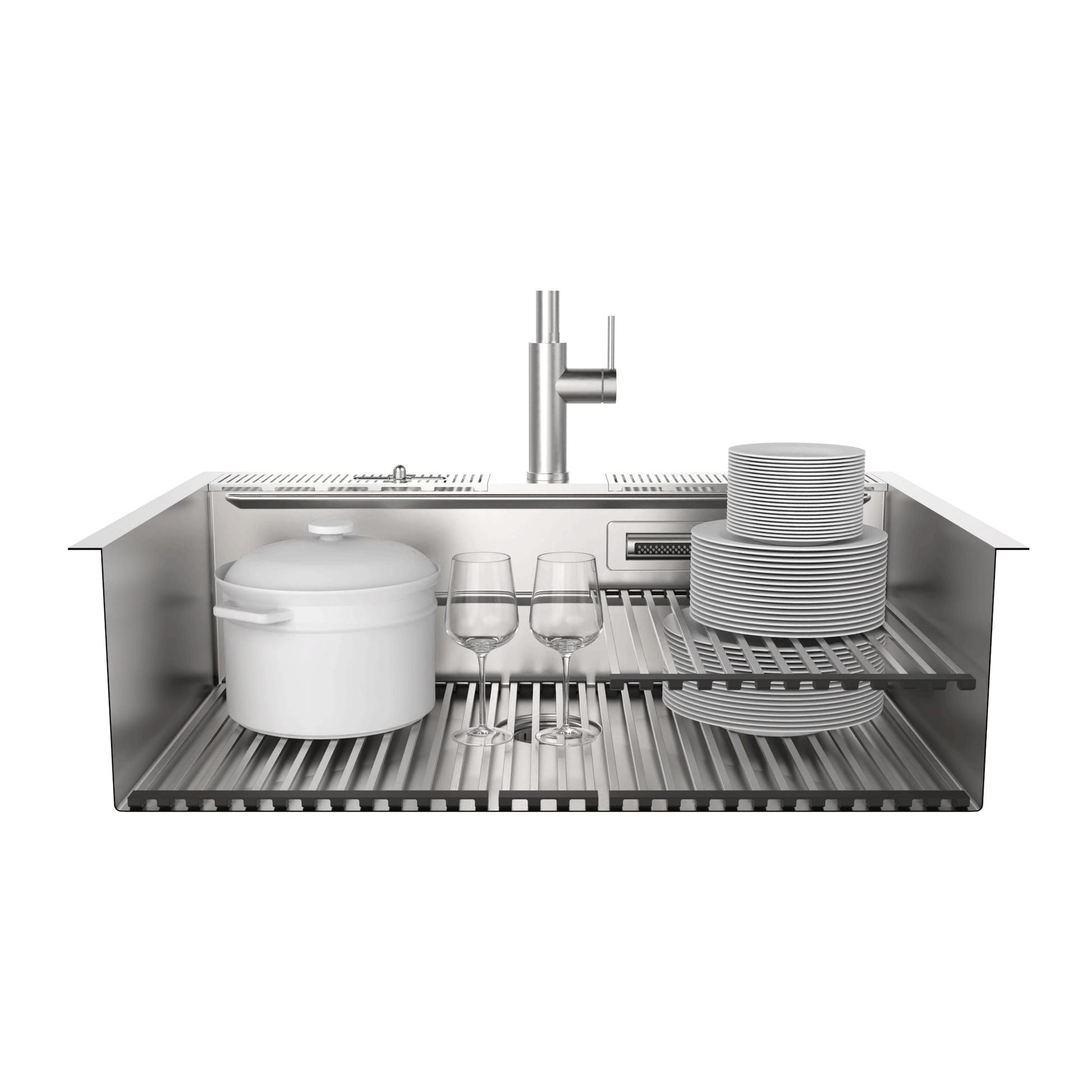 * Premium Custom-Fit Accessories Move Freely Across All 3 Levels for Flexible Prep, Rinse & Dry
