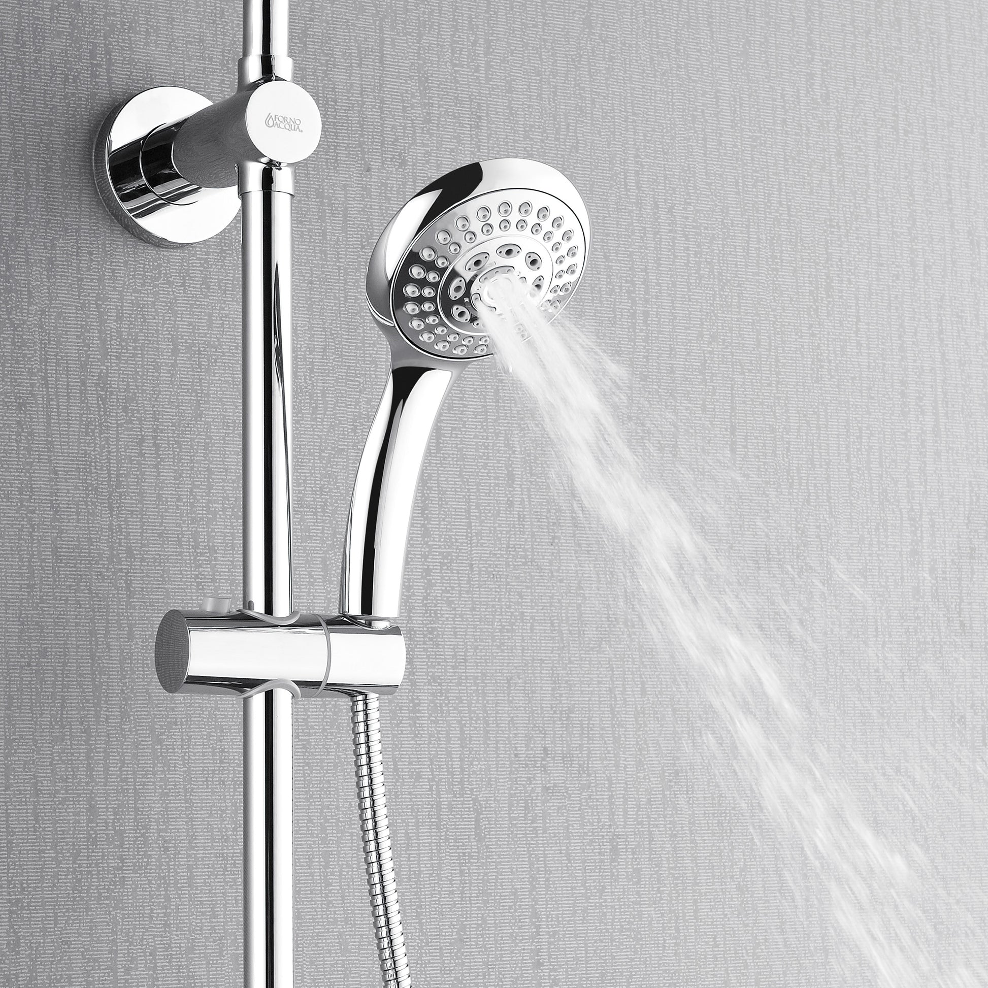 Elevate your daily routine with the FORNO ACQUA AcquaSPA Wall-Mounted Shower Column featuring a patented 6 function 8" rainfall shower head, 5 function handheld shower wand, and three adjustable body jets for a spa-like full-body experience. With a water-saving 1.8 GPM flow rate that maintains steady pressure, this sleek stainless steel column with polished chrome finish adds bold style to modern and transitional bathrooms. The intuitive 6-way diverter allows effortless control of all outlets, and installation is very simple with standard plumbing making it the perfect upgrade for any DIY bathroom remodel or home improvement project.
