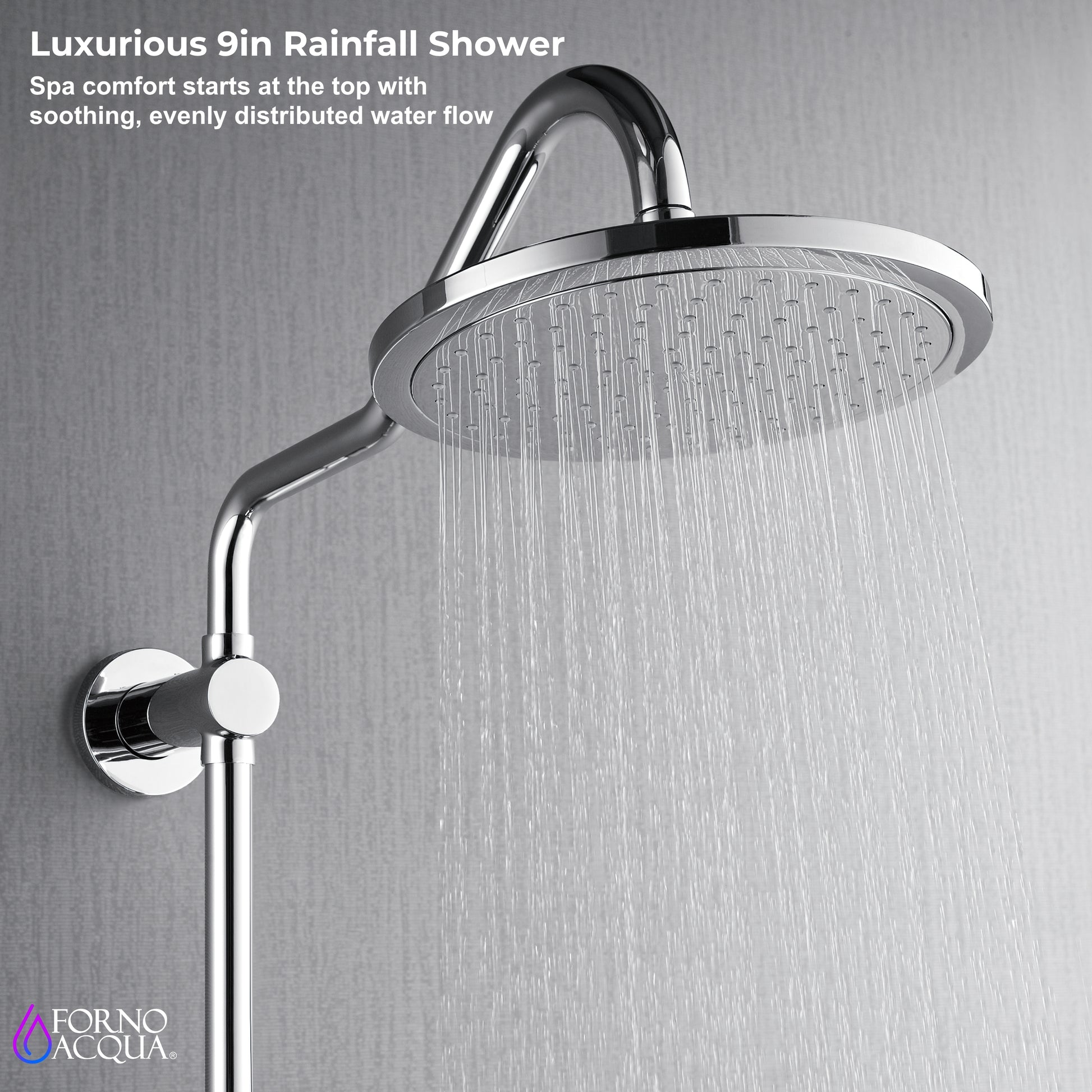 * Soothing 9 in. Oversized Rain Shower Head for Immersive Body Experience: Rain-like spray for everyday relaxation